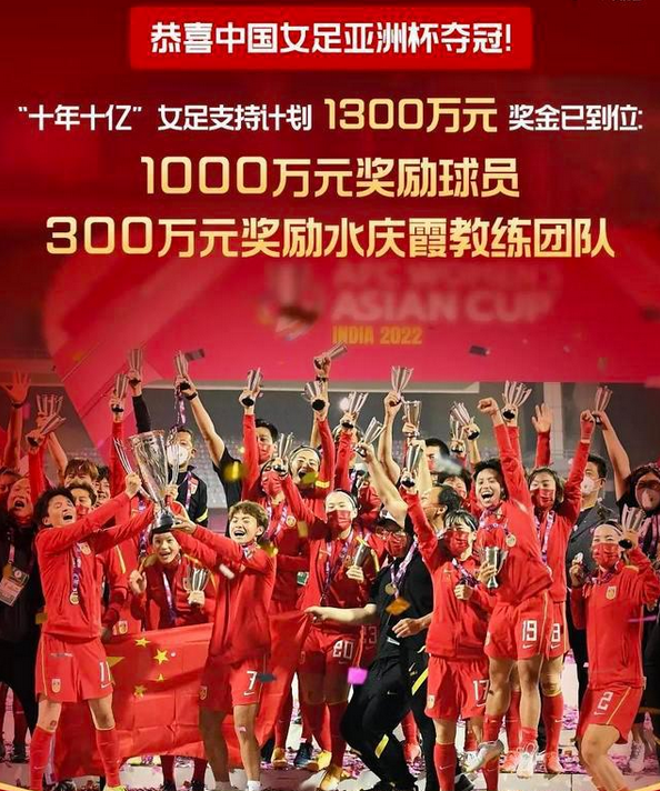 两大赞助商给女足国家队的奖金数额也十分可观:支付宝1300万,其中300万奖励教练组,蒙牛1000万元。