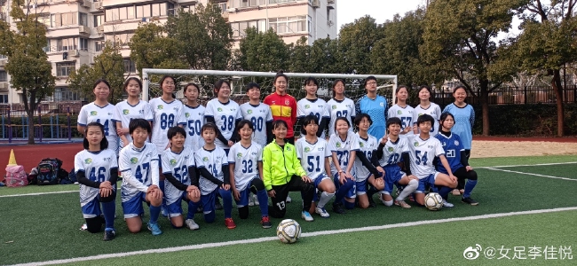 图中可见,李佳悦回到了自己就读过的上海市新泾中学,学校举办了欢迎仪式,墙上写着“热烈欢迎国足李佳悦学姐荣归母校,为女足喝彩”,并配上了捧杯的照片。李佳悦也与母校的女足队员们合影留念。