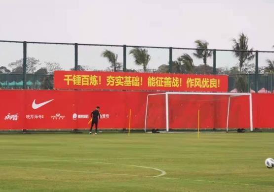 2022年,新一届国足集训,场边又出现了相同的口号……