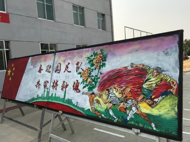 2018年,国足军训营,墙上挂的口号是:“能征善战,作风优良”。